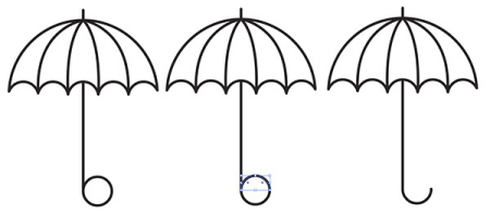 對(duì)于傘形把手中的曲線,在您之前繪制的垂直線的底部邊緣排成一個(gè)小圓圈。使用剪刀工具,切割圓圈的頂部?jī)蓚€(gè)部分并刪除它們。集團(tuán)一切融合在一起。