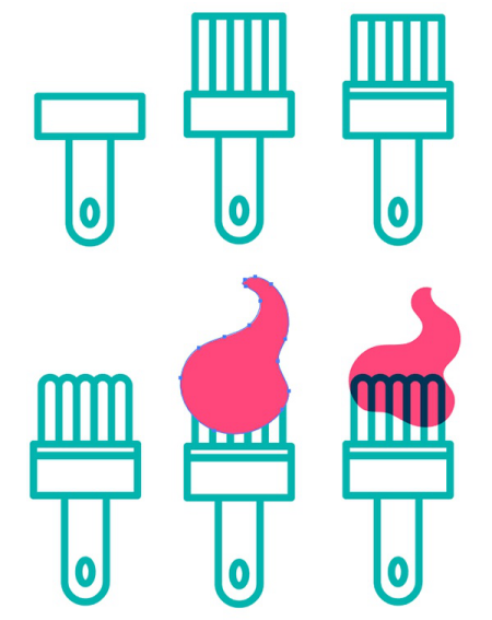 我們的畫(huà)筆圖標(biāo)也很簡(jiǎn)單。畫(huà)兩個(gè)垂直的矩形。將垂直角的底角倒圓并添加一個(gè)小橢圓,在畫(huà)筆的手柄上創(chuàng)建一個(gè)孔。