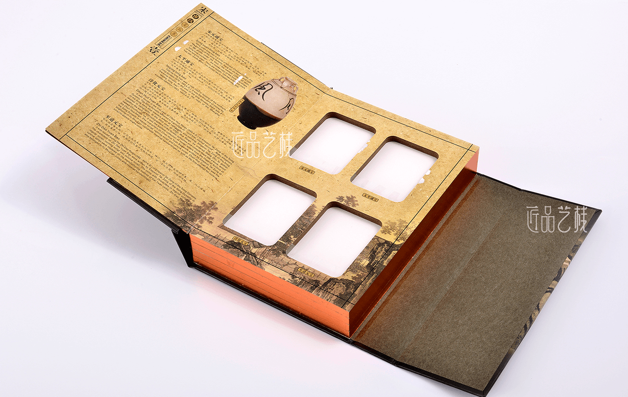 古錢真品集包裝盒套裝定制,是一款專為古錢幣收藏而定制的包裝盒,采用蝴蝶活頁精裝的創(chuàng)意結(jié)構(gòu),以中國古典元素結(jié)合雙開門的形式,以及金邊燙印等工藝,使整個包裝盒呈現(xiàn)出古典、奢華和濃濃的歷史感,體現(xiàn)出所收藏古幣的高端品質(zhì)感和文化價值。
