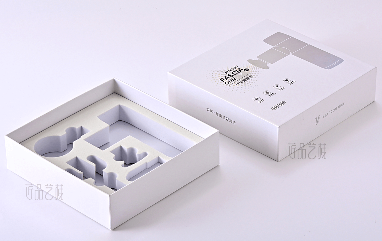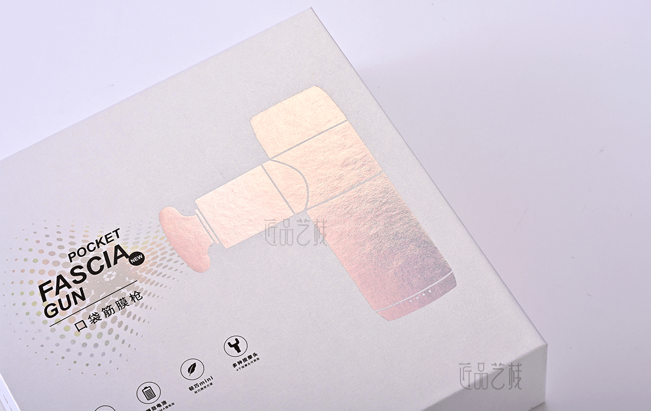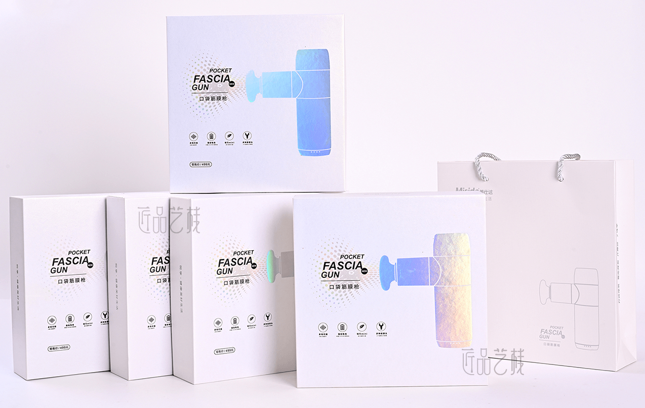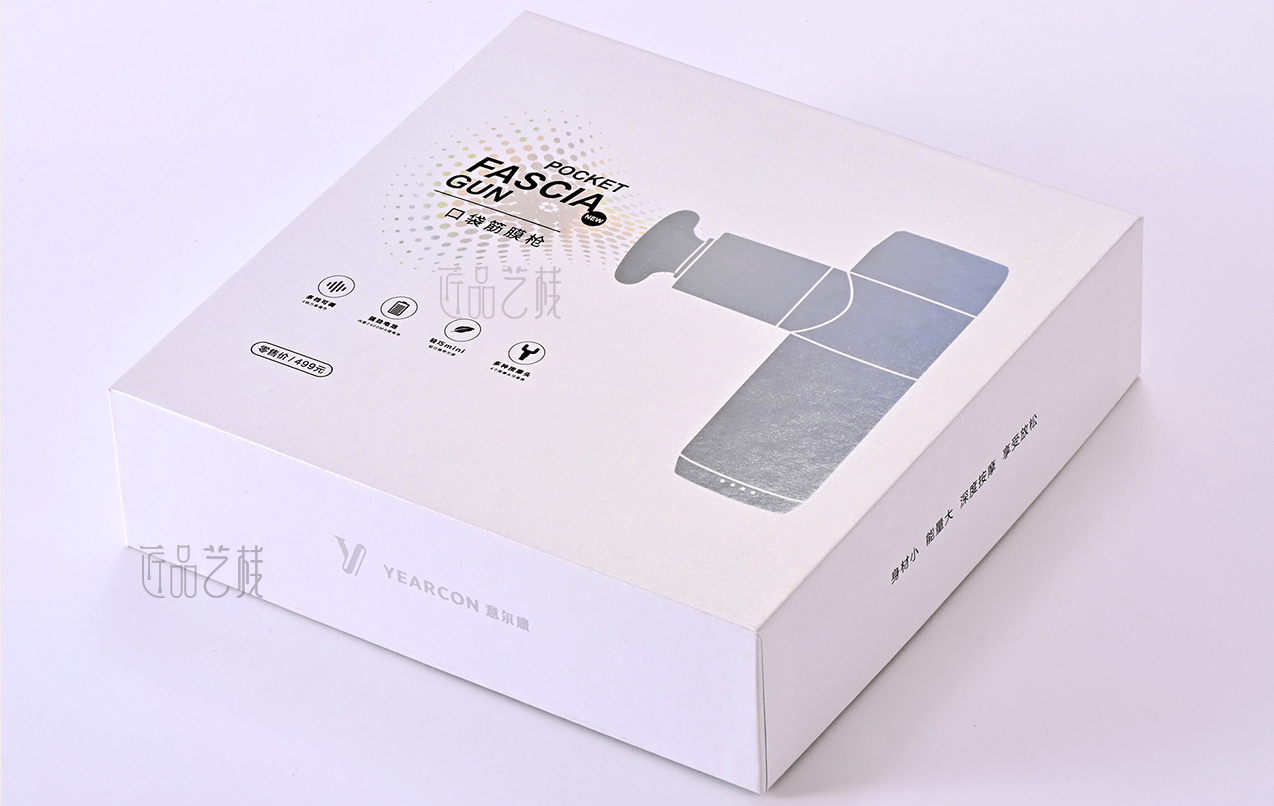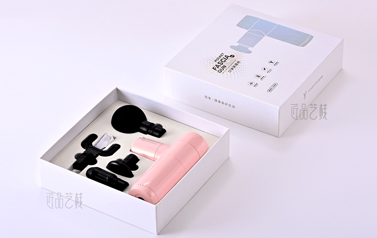 意爾康企業(yè)集團,全國3000多家專賣店連鎖品牌。在針對其口袋按摩槍產(chǎn)品包裝盒制作時,佳潤隆包裝印刷&匠品藝棧,根據(jù)相應(yīng)設(shè)計方案,配置a級珠光紙和uv機印刷,同時采用鐳射燙金工藝和精制天地盒,使整體產(chǎn)品包裝盒呈現(xiàn)簡而不凡的氣質(zhì),在市場中脫穎而出。