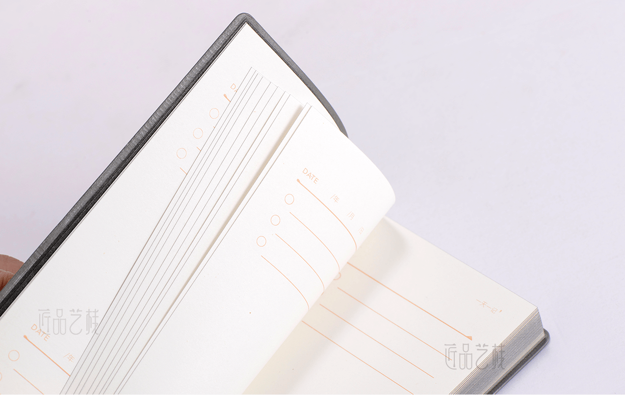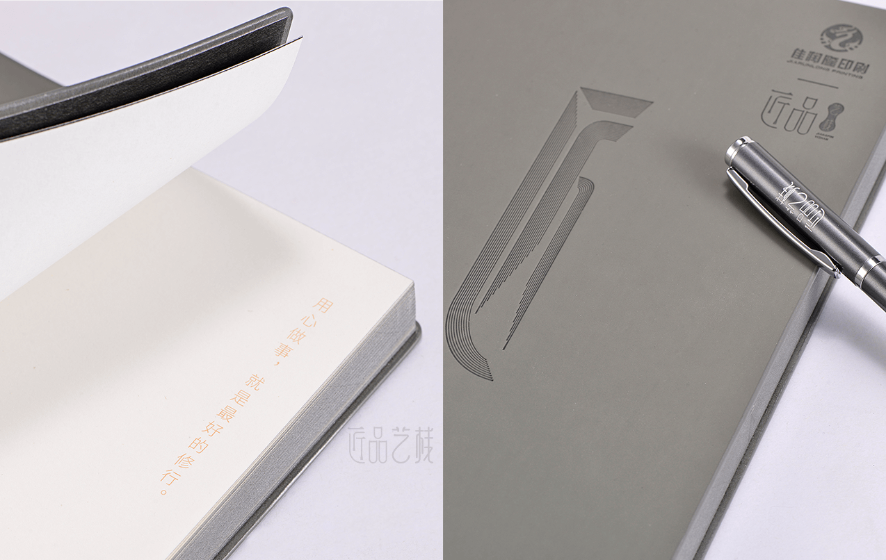 匠品藝棧文創(chuàng)筆記本,是由佳潤(rùn)隆包裝印刷公司自主設(shè)計(jì)、印刷、裝訂定制的簡(jiǎn)約創(chuàng)意筆記本,精選高端皮質(zhì)、筆記本專用紙張,并搭配銀邊滾燙的工藝精制而成,配置禮盒套裝,以此起到禮品和宣傳的雙重作用,同時(shí)更進(jìn)一步沉淀公司為客戶提供文創(chuàng)筆記本生產(chǎn)定制的經(jīng)驗(yàn)和能力。