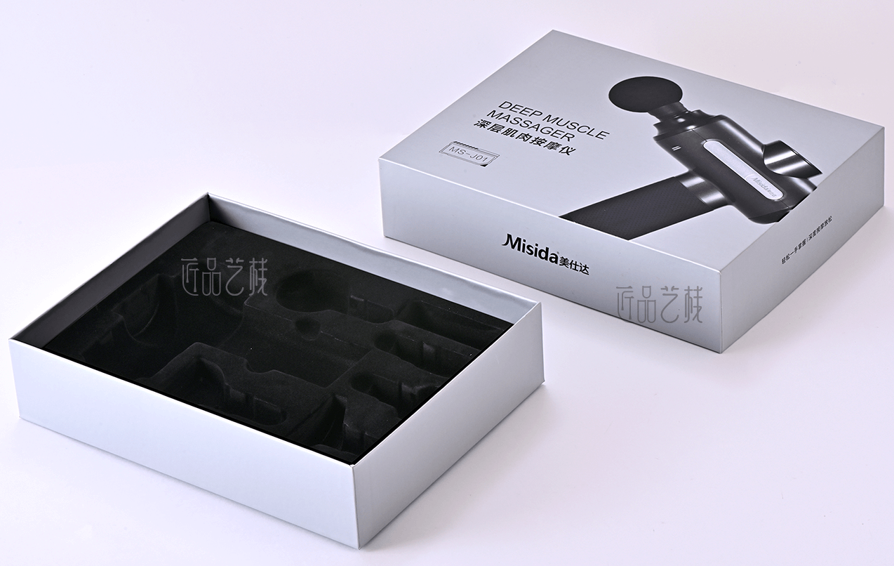 美仕達(dá)品牌,是深圳悅來(lái)科技有限公司主打品牌,亦是佳潤(rùn)隆包裝印刷&匠品藝棧長(zhǎng)期合作企業(yè)之一。在本產(chǎn)品包裝盒制作時(shí),我們采用硬卡紙精裝的方式,海德堡五色機(jī)專(zhuān)銀印刷,結(jié)合逆向UV等工藝,使其襯托出相應(yīng)產(chǎn)品——深層肌肉按摩儀的厚重感和高端感,大力提升該產(chǎn)品在行業(yè)領(lǐng)域的競(jìng)爭(zhēng)能力。