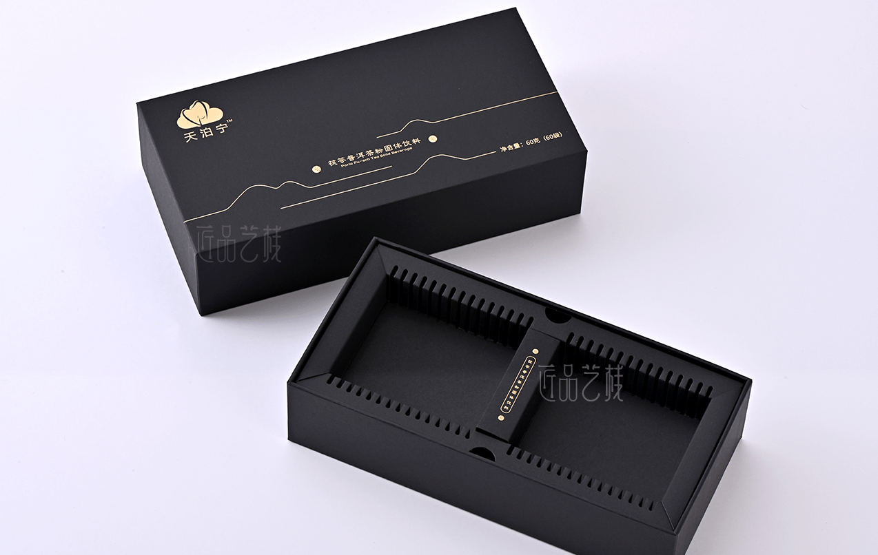 深圳繪云醫(yī)藥生物科技,是一家集開發(fā)、技術(shù)創(chuàng)新和方案解決的大健康領(lǐng)域優(yōu)秀企業(yè),旗下天泊寧品牌亦是深圳佳潤隆包裝印刷&匠品藝棧長期合作品牌之一,在本固體飲料產(chǎn)品包裝盒定制中,我們采用黑色卡紙為主體的形式,創(chuàng)意設(shè)計(jì)主題元素和包裝內(nèi)托,提供從包裝方案設(shè)計(jì)到印刷制作等整體服務(wù),為天泊寧品牌精心打造又一款優(yōu)秀產(chǎn)品包裝盒,大力提升產(chǎn)品的溢價(jià)能力和品牌氣質(zhì)。